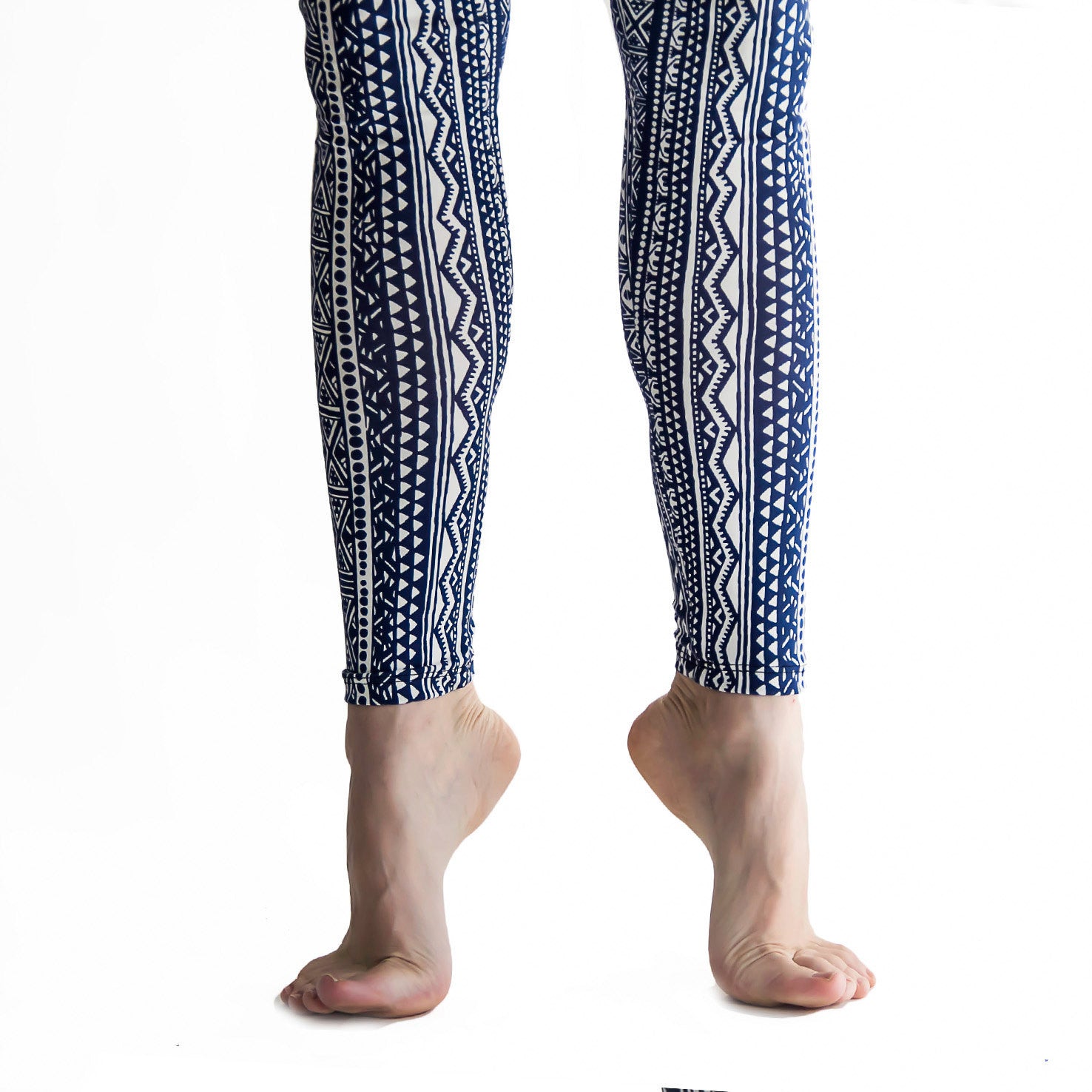 Blue & White Tribal Leggings, Native American Print Leggings.
