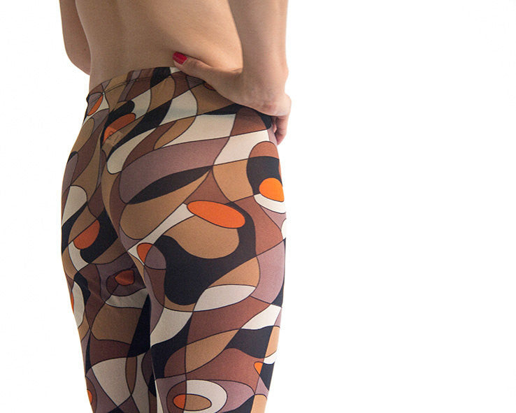 Light Brown Abstract Tribal Printed leggings - Retro style leggings- Halloween leggings